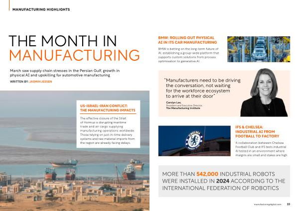March saw supply chain stresses in the Persian Gulf, growth in physical AI and upskilling for automotive manufacturing