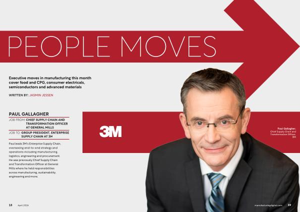Executive moves in manufacturing this month cover food and CPG, consumer electricals, semiconductors and advanced materials