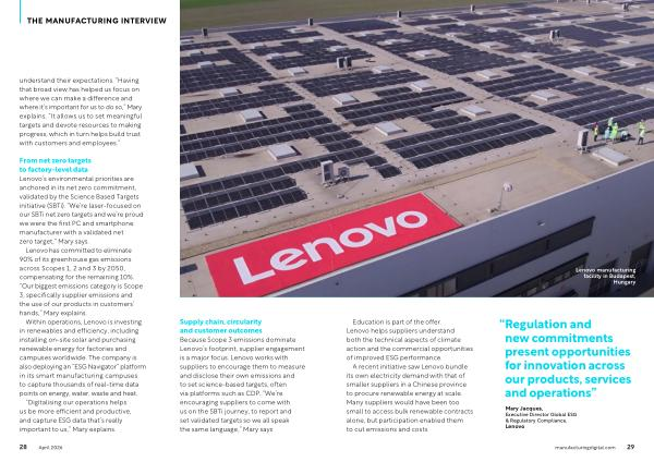 Mary Jacques, Executive Director Global ESG & Regulatory Compliance, Lenovo manufacturingdigital. com