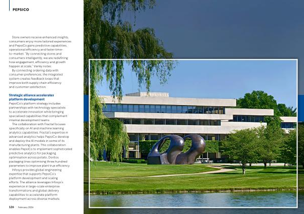 Strategic alliance accelerates platform development PepsiCo’ s platform strategy includes partnerships with technology specialists to accelerate innovation while bringing specialised capabilities that complement internal development teams.