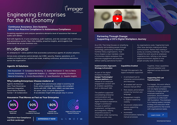 For Impiger, this work reflects a broader focus on supporting CIO-led digital workplace initiatives, bringing together employee experience, automation, and AI-enabled capabilities on a Microsoft 365 foundation. The emphasis is on helping leaders translate strategy into execution while building platforms that evolve with organisational needs.