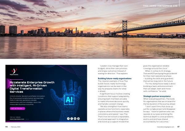 Strategic partner ecosystems When evaluating partners, Thai looks for organisations that are on board for the full duration of the journey ahead.“ I don’ t want firms that show up just for a single project and disappear,” he says.“ I look for partners who can operate at our pace and bring the technical depth to solve problems end to end and have shared accountability for outcomes.”