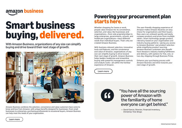 Enhance your purchasing process with Amazon Business and drive towards your next stage of growth.“ You have all the sourcing power of Amazon with the familiarity of home everyone can get behind.”