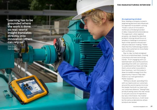 An engineering mindset Now, leading a company rooted in engineering precision has influenced his approach to problem-solving:“ Fluke’ s culture of innovation reinforces a mindset grounded in data, measurement and evidence. This approach, when applied properly, can dispel the idea that problem-solving should focus on whether a challenge is someone’ s fault or that opinions should overinfluence decision-making.” Parker feels that this methodology enables teams and customers to move faster with confidence.