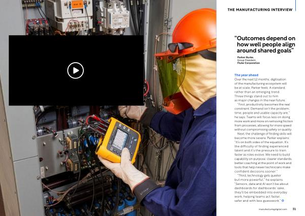 The year ahead Over the next 12 months, digitisation of the manufacturing ecosystem will be at scale, Parker feels. A standard, rather than an emerging trend. Three things stand out to him as major changes in the near future.