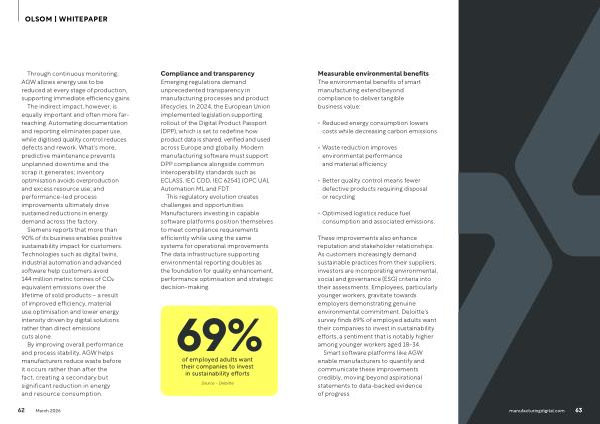Measurable environmental benefits The environmental benefits of smart manufacturing extend beyond compliance to deliver tangible business value: