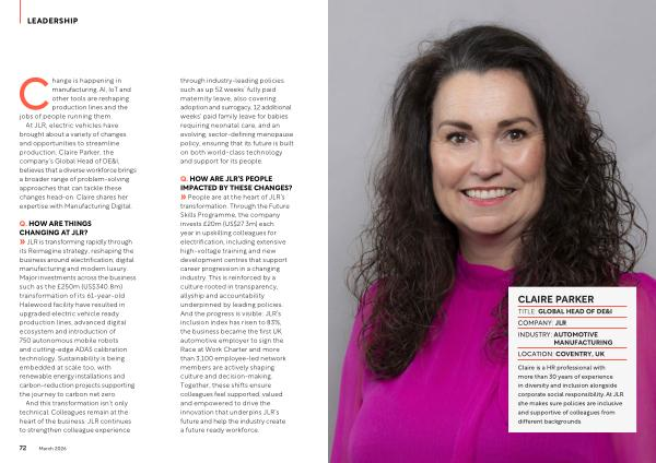At JLR, electric vehicles have brought about a variety of changes and opportunities to streamline production. Claire Parker, the company’ s Global Head of DE & I, believes that a diverse workforce brings a broader range of problem-solving approaches that can tackle these changes head-on. Claire shares her expertise with Manufacturing Digital.