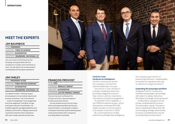 Jim Baumbick, president of Ford Europe, emphasised this productfirst philosophy, saying:“ Our plan is about unleashing the Blue Oval. We are leveraging strategic partnerships to ensure competitiveness, but we are obsessing over the product.