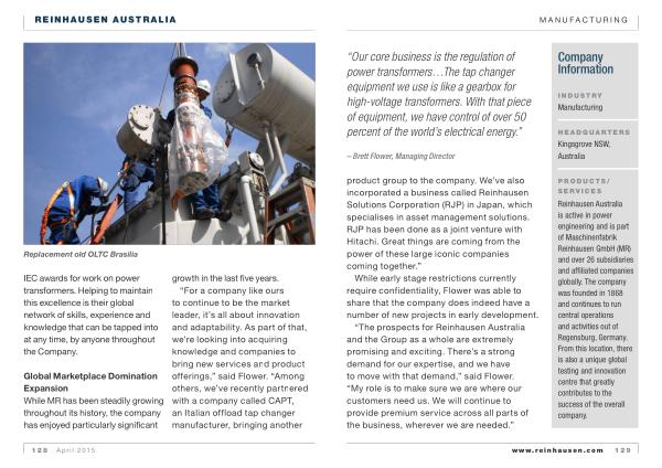 “ For a company like ours to continue to be the market leader , it ’ s all about innovation and adaptability . As part of that , we ’ re looking into acquiring knowledge and companies to bring new services and product offerings ,” said Flower . “ Among others , we ’ ve recently partnered with a company called CAPT , an Italian offload tap changer manufacturer , bringing another