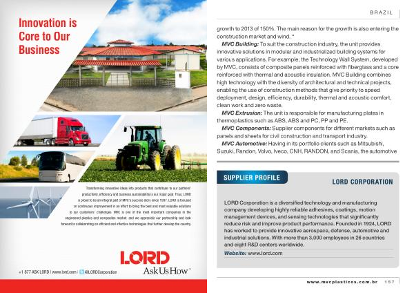 Transforming innovative ideas into products that contribute to our partners ’ productivity , efficiency and business sustainability is our major goal . Thus , LORD is proud to be an integral part of MVC ' s success story since 1997 . LORD is focused on continuous improvement in an effort to bring the best and most valuable solutions to our customers ’ challenges . MVC is one of the most important companies in the engineered plastics and composites market , and we appreciate our partnership and look forward to collaborating on efficient and effective technologies that further develop the country .