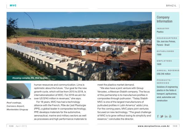 Roof coatings , Carrasco Airport , Montevideo Uruguay human resources and communication . Lima is optimistic about the future . “ Our goal for the new growth cycle , which will be from 2015 to 2018 , is internationalization of MVC . For 2018 we aim for over US $ 740 million in revenues ,” she says .
