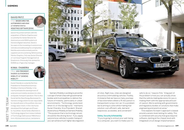 Siemens Mobility is working to prove the concept of smart cities with governmental bodies and municipalities to deliver the future of mobility , particularly in urban environments . “ Technology works best when it ’ s in the background ,” maintains Kunal Chandra , Vice President , Shared Autonomous Mobility at Siemens Mobility . “ The purpose that a technology serves should be the driving factor . If you apply autonomous vehicles to public transport you can achieve much higher decongestion