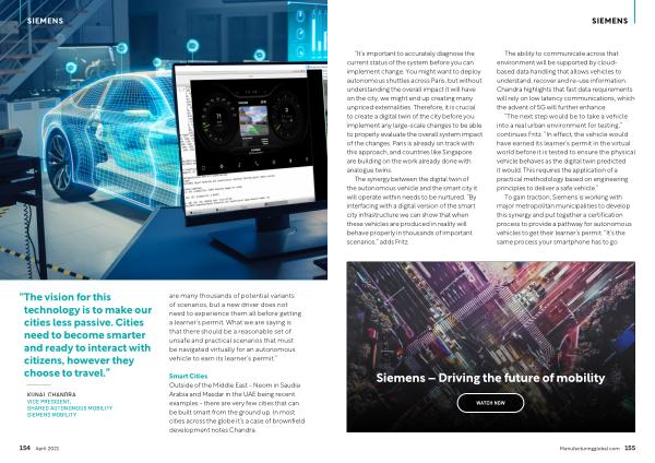KUNAL CHANDRA VICE PRESIDENT , SHARED AUTONOMOUS MOBILITY SIEMENS MOBILITY are many thousands of potential variants of scenarios , but a new driver does not need to experience them all before getting a learner ’ s permit . What we are saying is that there should be a reasonable set of unsafe and practical scenarios that must be navigated virtually for an autonomous vehicle to earn its learner ’ s permit .”