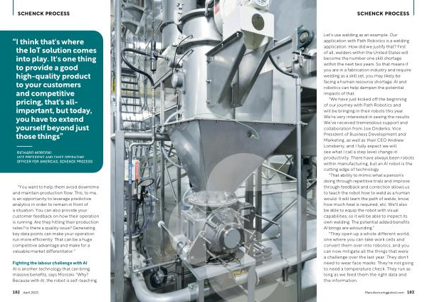 " We have just kicked off the beginning of our journey with Path Robotics and will be bringing in their robots this year . We ' re very interested in seeing the results . We ’ ve received tremendous support and collaboration from Joe Onderko , Vice President of Business Development and Marketing , as well as their CEO Andrew Lonsberry , and I fully expect we will see what I call a step level change in productivity . There have always been robots within manufacturing , but an AI robot is the cutting edge of technology .