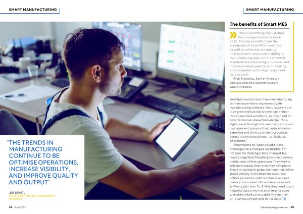 This is something that Gartner has surveyed annually since 2012 . The top benefits from the standpoint of how MES is justified , as well as achieved , are quality improvement , improved visibility to manufacturing data , enforcement of standard manufacturing processes and improved employee decision making and competency ( through improved data access ).
