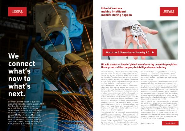 Hitachi Vantara ’ s head of global manufacturing consulting explains the approach of the company to intelligent manufacturing