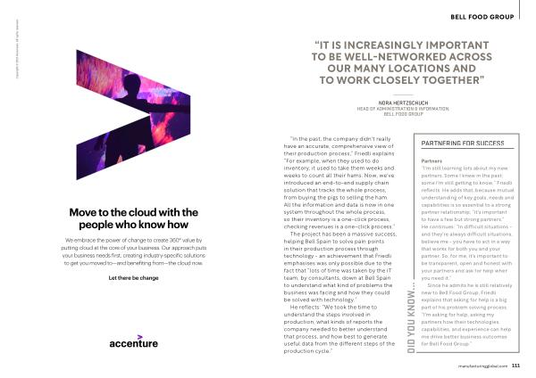 “ In the past , the company didn ' t really have an accurate , comprehensive view of their production process ,” Friedli explains . “ For example , when they used to do inventory , it used to take them weeks and weeks to count all their hams . Now , we ' ve introduced an end-to-end supply chain solution that tracks the whole process , from buying the pigs to selling the ham . All the information and data is now in one system throughout the whole process , so their inventory is a one-click process , checking revenues is a one-click process .”