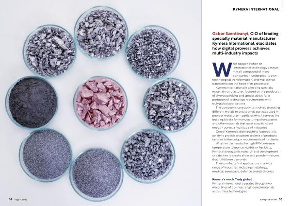 Gabor Szentivanyi , CIO of leading specialty material manufacturer Kymera International , elucidates how digital prowess achieves multi-industry impacts
