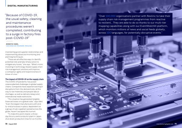 “ Over 100,000 organisations partner with Resilinc to take their supply chain risk management programmes from reactive to resilient ... They are able to do so thanks to our multi-tier mapping capabilities along with our EventWatchAI platform , which monitors millions of news and social feeds globally , across 100 languages , for potentially disruptive events .”
