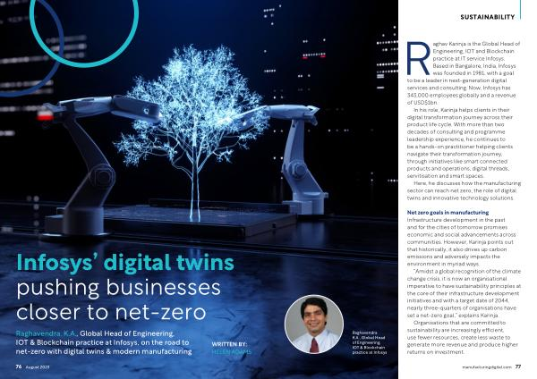 Here , he discusses how the manufacturing sector can reach net zero , the role of digital twins and innovative technology solutions .