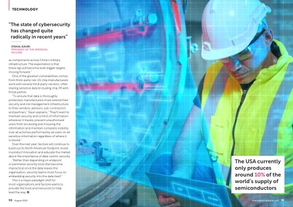 One of the greatest vulnerabilities comes from third-party risk . US chip manufacturers work with several third-party vendors , often sharing sensitive data ( including chip IP ) with those parties .