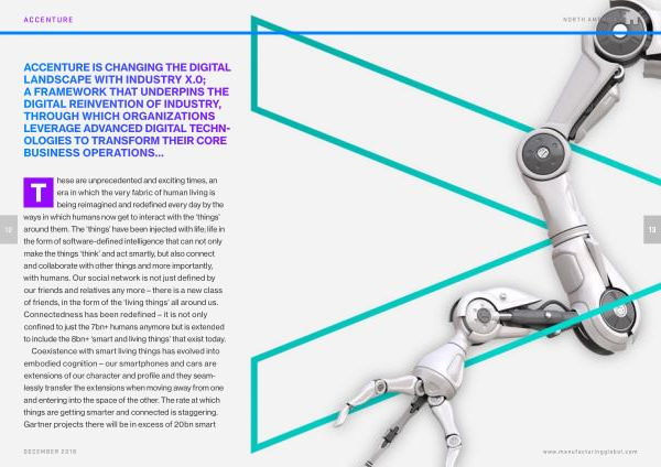 ACCENTURE IS CHANGING THE DIGITAL LANDSCAPE WITH INDUSTRY X . 0 ; A FRAMEWORK THAT UNDERPINS THE DIGITAL REINVENTION OF INDUSTRY , THROUGH WHICH ORGANIZATIONS LEVERAGE ADVANCED DIGITAL TECHN- OLOGIES TO TRANSFORM THEIR CORE BUSINESS OPERATIONS …