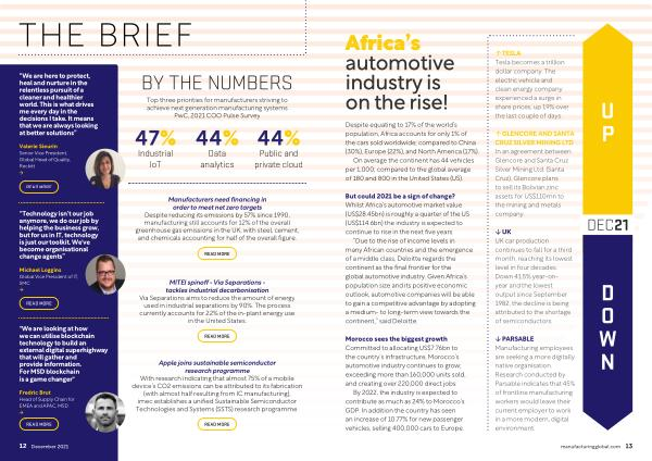 Top three priorities for manufacturers striving to achieve next generation manufacturing systems PwC , 2021 COO Pulse Survey