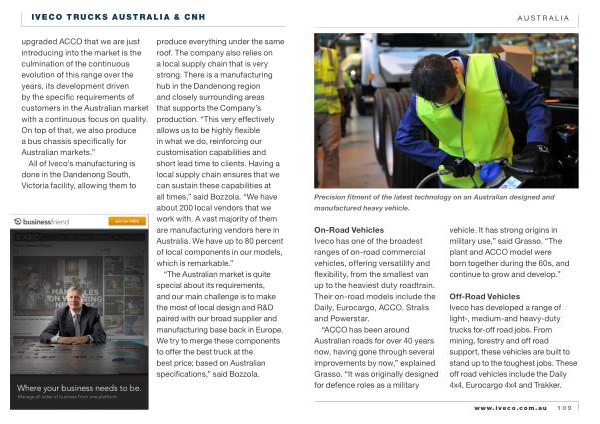 “ ACCO has been around Australian roads for over 40 years now , having gone through several improvements by now ,” explained Grasso . “ It was originally designed for defence roles as a military vehicle . It has strong origins in military use ,” said Grasso . “ The plant and ACCO model were born together during the 60s , and continue to grow and develop .”
