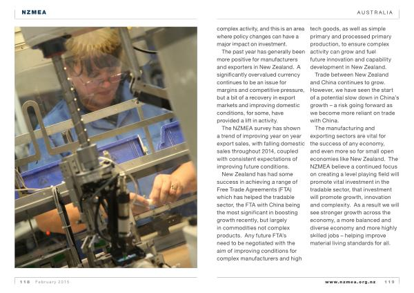 The manufacturing and exporting sectors are vital for the success of any economy , and even more so for small open economies like New Zealand . The NZMEA believe a continued focus on creating a level playing field will promote vital investment in the tradable sector , that investment will promote growth , innovation and complexity . As a result we will see stronger growth across the economy , a more balanced and diverse economy and more highly skilled jobs – helping improve material living standards for all .