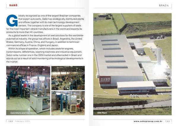 Globally recognized as one of the largest Brazilian companies that export auto parts , Sabó has strategically distributed plants and offices together with its main technology development centers . The company is one of the largest suppliers of seals for the most important vehicle manufacturers in the world and exports its products to more than 40 countries .
