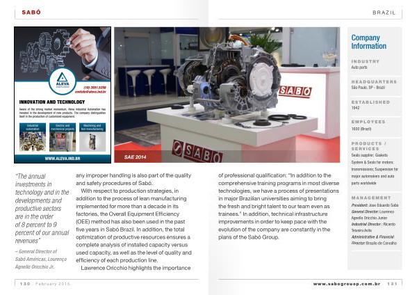 of professional qualification : “ In addition to the comprehensive training programs in most diverse technologies , we have a process of presentations in major Brazilian universities aiming to bring the fresh and bright talent to our team even as trainees .” In addition , technical infrastructure improvements in order to keep pace with the evolution of the company are constantly in the plans of the Sabó Group .