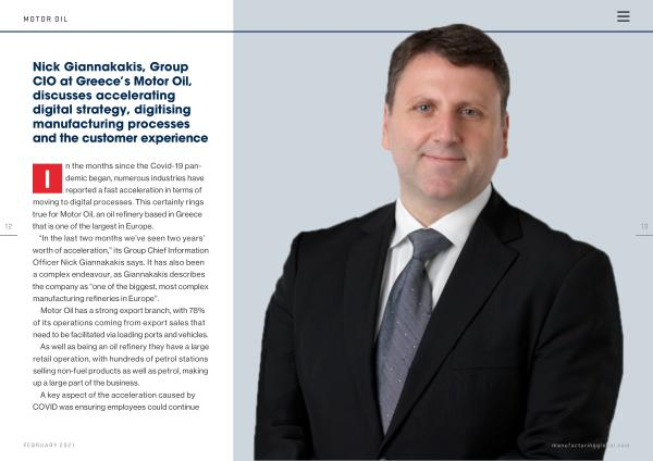 Nick Giannakakis , Group CIO at Greece ’ s Motor Oil , discusses accelerating digital strategy , digitising manufacturing processes and the customer experience
