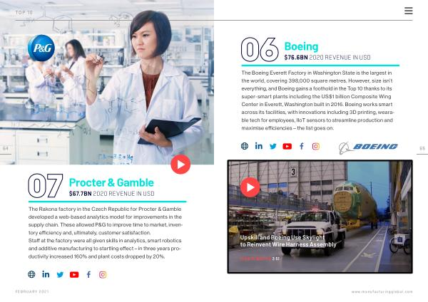 The Boeing Everett Factory in Washington State is the largest in the world , covering 398,000 square metres . However , size isn ’ t everything , and Boeing gains a foothold in the Top 10 thanks to its super-smart plants including the US $ 1 billion Composite Wing Center in Everett , Washington built in 2016 . Boeing works smart across its facilities , with innovations including 3D printing , wearable tech for employees , IIoT sensors to streamline production and maximise efficiencies – the list goes on .