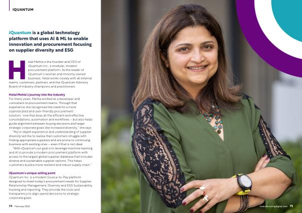 iQuantum is a global technology platform that uses AI & ML to enable innovation and procurement focusing on supplier diversity and ESG
