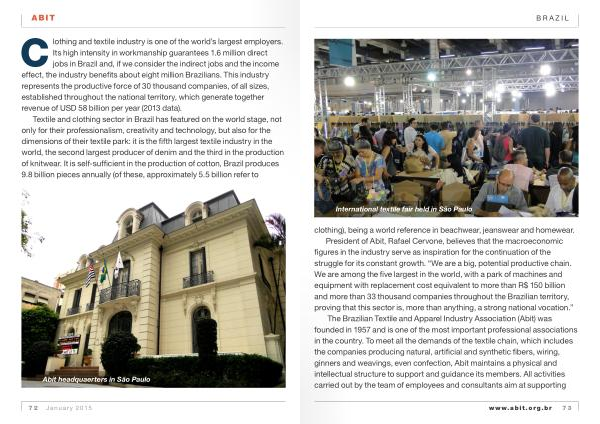 C lothing and textile industry is one of the world ’ s largest employers . Its high intensity in workmanship guarantees 1.6 million direct jobs in Brazil and , if we consider the indirect jobs and the income effect , the industry benefits about eight million Brazilians . This industry represents the productive force of 30 thousand companies , of all sizes , established throughout the national territory , which generate together revenue of Usd 58 billion per year ( 2013 data ).