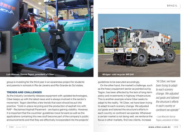 TRENDS AND CHALLENGES As the industry constantly releases equipment with updated technologies , Ciber keeps up with the latest news and is always involved in the sector ’ s movement . Tegon identifies a few trends that soon should be put into practice . “ Cold-in-place recycling and the production of asphalt mix with RAP - Reclaimed Asphalt Pavement - are topics gaining visibility . However , it is important that the countries ’ guidelines move forward as well so the applications containing this new stuff become part of the company ’ s public announcements and that they are effectively incorporated into the projects ’
