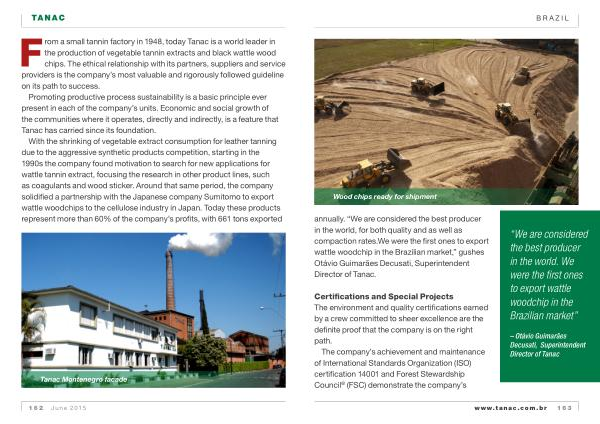 From a small tannin factory in 1948 , today Tanac is a world leader in the production of vegetable tannin extracts and black wattle wood chips . The ethical relationship with its partners , suppliers and service providers is the company ’ s most valuable and rigorously followed guideline on its path to success .