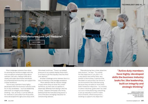 “ Most veterans feel an intense change of pace when they re-enter the civilian workforce , as their new occupation is drastically different from being in the line of duty ,” explains Olmstead , who firmly believes that the manufacturing sector is one of the best-emerging industries for transitioning veterans .