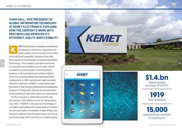 CHRIS HALL , VICE PRESIDENT OF GLOBAL INFORMATION TECHNOLOGY AT KEMET ELECTRONICS , EXPLAINS HOW THE COMPANY ’ S WORK WITH PARTNERS HAS IMPROVED ITS EFFICIENCY , AGILITY AND FLEXIBILITY