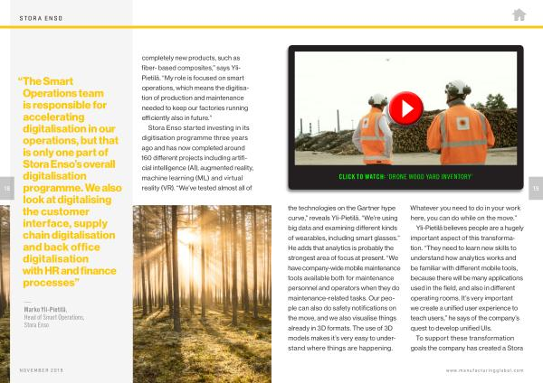 — Marko Yli-Pietilä , Head of Smart Operations , Stora Enso completely new products , such as fiber- based composites ,” says Yli- Pietilä . “ My role is focused on smart operations , which means the digitisation of production and maintenance needed to keep our factories running efficiently also in future .”
