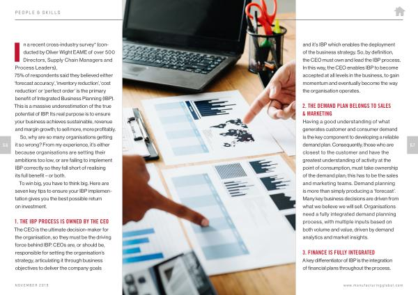 I n a recent cross-industry survey * ( conducted by Oliver Wight EAME of over 500 Directors , Supply Chain Managers and Process Leaders ), 75 % of respondents said they believed either ‘ forecast accuracy ’, ‘ inventory reduction ’, ‘ cost reduction ’ or ‘ perfect order ’ is the primary benefit of Integrated Business Planning ( IBP ). This is a massive underestimation of the true potential of IBP . Its real purpose is to ensure your business achieves sustainable , revenue and margin growth ; to sell more , more profitably .