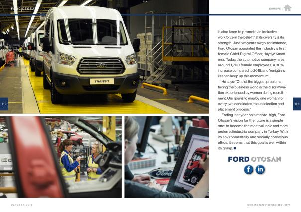 is also keen to promote an inclusive workforce in the belief that its diversity is its strength . Just two years awgo , for instance , Ford Otosan appointed the industry ’ s first female Chief Digital Officer , Hayriye Karadeniz . Today , the automotive company hires around 1,700 female employees , a 30 % increase compared to 2015 , and Yenigün is keen to keep up this momentum .