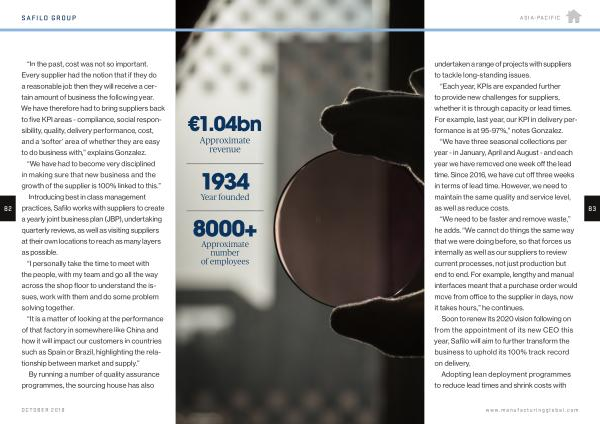 “ In the past , cost was not so important . Every supplier had the notion that if they do a reasonable job then they will receive a certain amount of business the following year . We have therefore had to bring suppliers back to five KPI areas - compliance , social responsibility , quality , delivery performance , cost , and a ‘ softer ’ area of whether they are easy to do business with ,” explains Gonzalez .